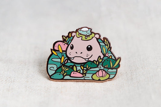 Hippo and Frog Friend | Collectors Cute Hard Enamel Pin | Kawaii Aesthetic Birthday Gift for Her | Christmas Present for Him | Art by Miamouz