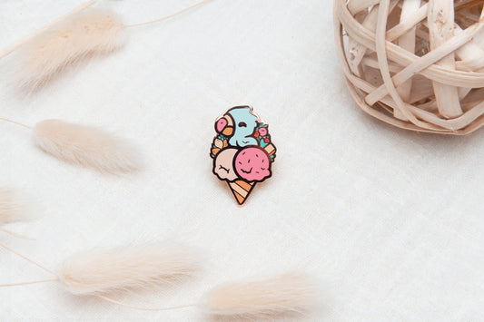 Summer Ice Cream | Toucan Parrot Pin | Summer Collectors Hard Enamel Pin Badge | Kawaii Aesthetic Birthday Gift for Her | Christmas Present