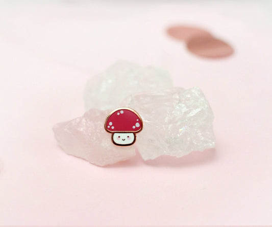 Tiny Happy Mushroom | Autumn Collectors Hard Enamel Pin Badge | Kawaii Aesthetic Birthday Gift for Her | Christmas Present for Him | Miamouz