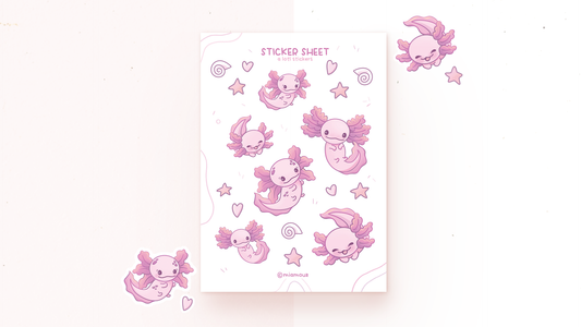 A Lotl Stickers | A6 matte or glossy Sticker Sheet | Axolotl Vinyl Sticker Sheet | Journaling | Children Illustration | Miamouz