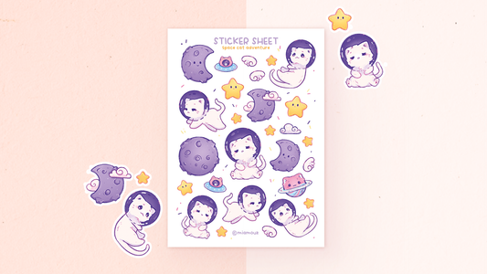 Space Cat Adventure Stickers | A6 Matte Sticker Sheet | Cat Sticker | Kitty Vinyl Sticker Sheet | Journaling | Children Illustration