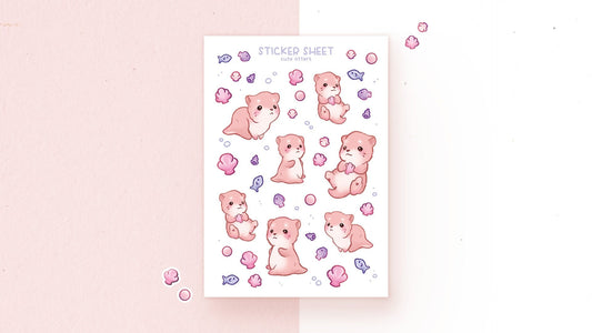 Cute Otters Stickers | A6 matte or glossy Sticker Sheet | Otter Vinyl Sticker Sheet | Journaling | Children Illustration | Miamouz