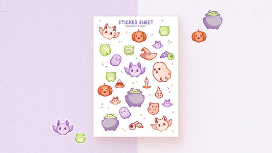 Halloween Cuties Stickers | A6 Matte Sticker Sheet | Pumpkin Ghost Vinyl Sticker Sheet | Journaling | Children Illustration | Miamouz