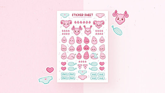 Cuterus & Period Tracker Stickers | A6 Matte & Glossy Sticker Sheet | Menstrual Cycle Vinyl Sticker Sheet | Journaling | Miamouz