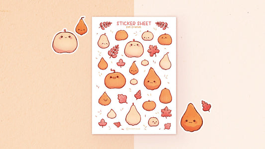 Fall Friends Stickers | A6 Matte Sticker Sheet | Pumpkin Vinyl Sticker Sheet | Journaling | Children Illustration | Miamouz