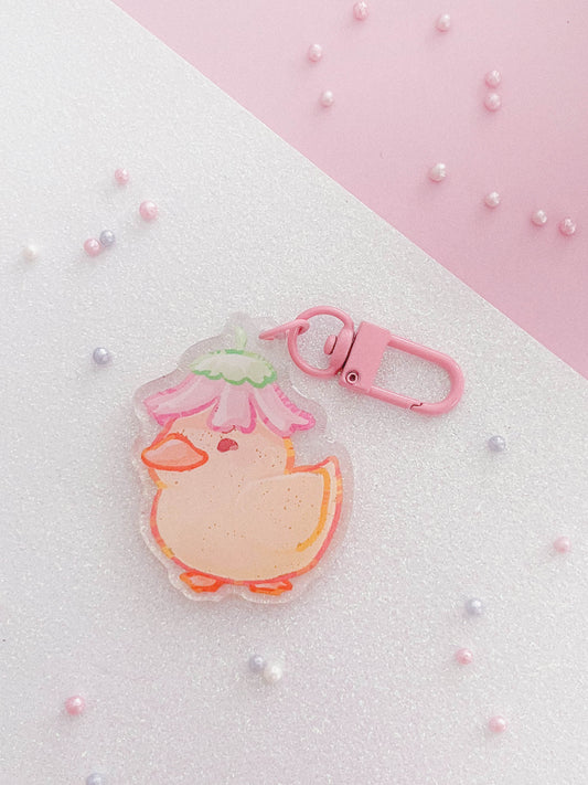 Schlüsselanhänger aus Acryl mit Entenkopf und Blumenkopf | Niedliche Tierkunst | Schlüsselanhänger mit Entenküken | Ästhetisches Geburtstagsgeschenk für Sie | Weihnachtsgeschenk | Miamouz