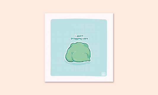 Kunstdruck „I Don't Frogging Care“, 15 x 15 Zoll | Quadratischer Kunstdruck in Pastellfarben | Grußkarte | Hochwertiger Leinenkarton | Heimdekor | Wandkunst | Kunst von Miamouz