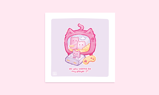 Do You Wanna Be My Player Two 15x15 Kunstdruck | Quadratischer Kawaii-Gaming-Kunstdruck | Grußkarte | Leinenkarton | Wohndekor | Wandkunst
