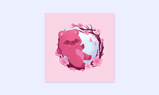 Niedlicher japanischer Tanuki 15x15 Kunstdruck | Kawaii Sakura Quadratischer Kunstdruck | Grußkarte | Leinenkarton | Wohndekor | Wandkunst