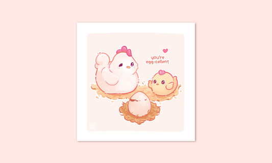 You're Excellent 15 x 15 Kunstdruck | Kawaii Chicken Square Kunstdruck | Grußkarte | Leinenkarton | Wohndekor | Wandkunst