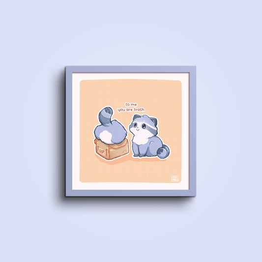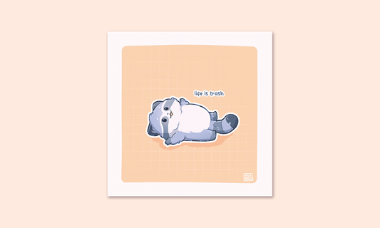 Life Is Trash 15x15 Kunstdruck | Waschbär Pastell Quadratischer Kunstdruck | Grußkarte | Hochwertiger Leinenkarton | Heimdekor | Wandkunst | Kunst von Miamouz