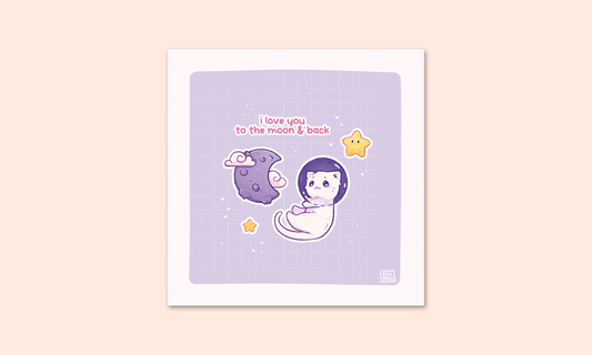 Kunstdruck „I Love You To The Stars“ (15 x 15) | Quadratischer Kunstdruck „Space Cat“ in Pastell | Grußkarte | Leinenkarton | Heimdekor | Wandkunst