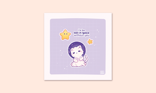 I'd Be Lost In Space Without You 15 x 15 Kunstdruck | Quadratischer Kunstdruck „Katze in Pastell“ | Grußkarte | Leinenkarton | Heimdekor | Wandkunst