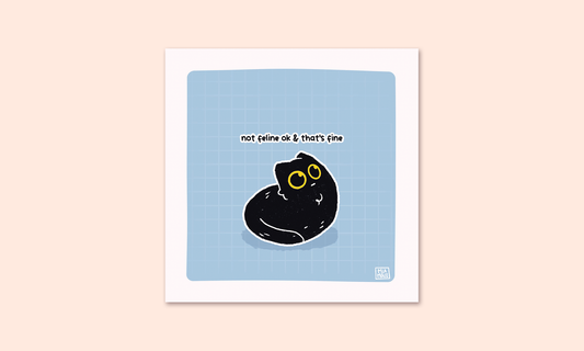 Nicht katzenartig, ok und das ist in Ordnung, 15 x 15 Kunstdruck | Quadratischer Kunstdruck „Schwarze Katze“ in Pastell | Grußkarte | Leinenkarton | Heimdekor | Wandkunst