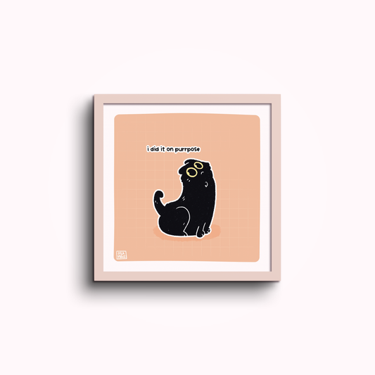 Ich habe es absichtlich getan, 15 x 15 Kunstdruck | Quadratischer Kunstdruck „Schwarze Katze“ in Pastell | Grußkarte | Leinenkarton | Heimdekor | Wandkunst