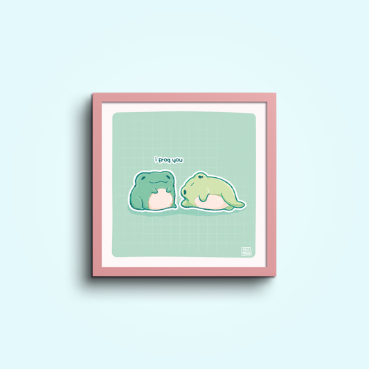 Kunstdruck „I Frog You“ 15 x 15 | Quadratischer Kunstdruck in Pastell | Grußkarte | Hochwertiger Leinenkarton | Heimdekor | Wandkunst | Kunst von Miamouz