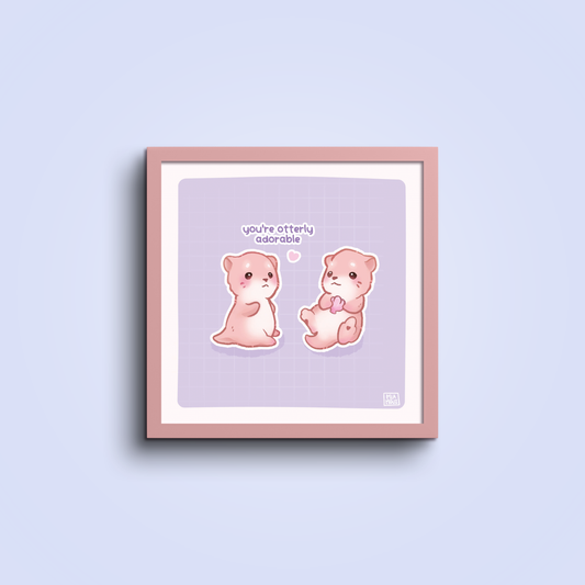 Kunstdruck „You're Otterly Adorable“, 15 x 15 Zoll | Quadratischer Kunstdruck „Seeotter“ in Pastell | Grußkarte | Leinenkarton | Heimdekor | Wandkunst
