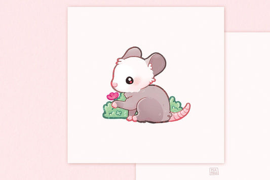 Opossum 15x15 Kunstdruck | Quadratischer Kunstdruck in Pastell | Kinderzimmerkunst | Hochwertiger Leinenkarton | Heimdeko | Wandkunst | Kunst von Miamouz