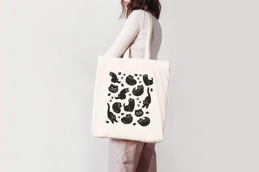 Void Cat Bag | Süße Einkaufstasche mit schwarzen Katzen 100 % Baumwolle | Einkaufstasche | Jutetasche | Kunst-Geldbörse | Großer Shopper | Liebhaber schwarzer Katzen | Miamouz
