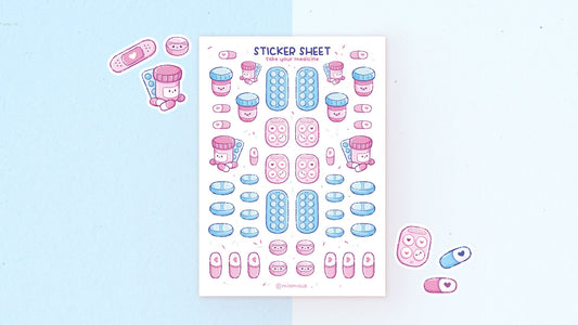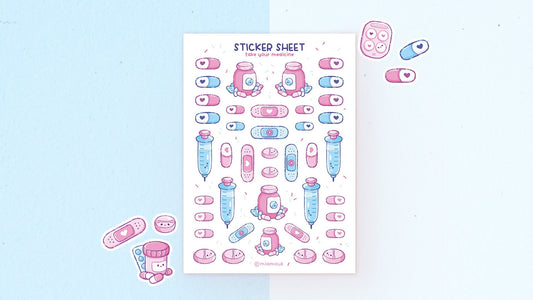 Nehmen Sie Ihre Medizin | Kalender-Tagebuch A6, mattierter Vinyl-Aufkleberbogen | Medizinischer Tracker | Medikamente | Pillen | Miamouz