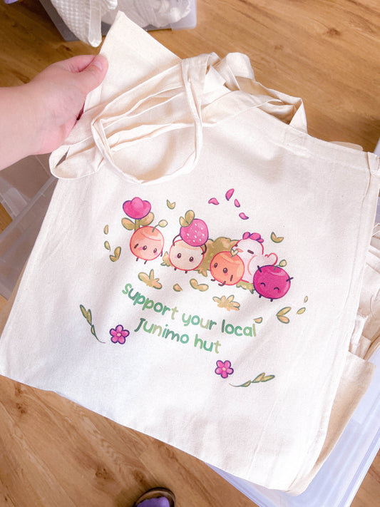Unterstützen Sie Ihre lokale Junimo-Hütte Tragetasche | Von Farmspielen inspirierte Tragetasche | Einkaufstasche | Jutetasche | Kunsthandtasche | Große Einkaufstasche | Miamouz