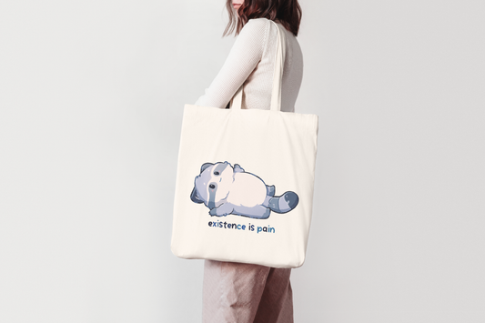 Existence Is Pain | Süße Waschbär-Tragetasche, 100 % Baumwolle | Einkaufstasche | Jutetasche | Kunst-Geldbörse | Trash Panda Lovers | Miamouz