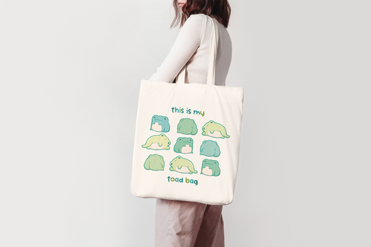 This Is My Toad Bag | Süße Frosch-Einkaufstasche, 100 % Baumwolle | Einkaufstasche | Jutetasche | Kunst-Geldbörse | Krötenliebhaber | Miamouz