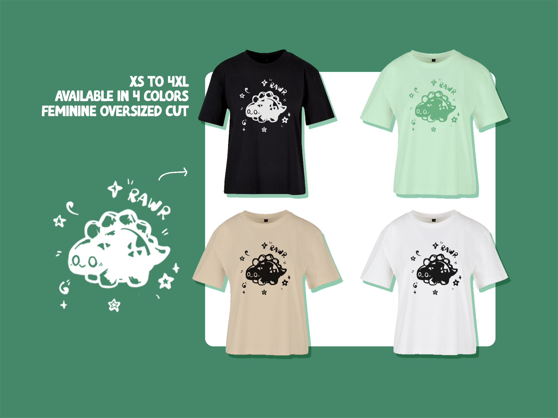 Rawr Dinosaurier T-Shirt | Übergroßer femininer Schnitt | Handbedrucktes T-Shirt | Miamouz