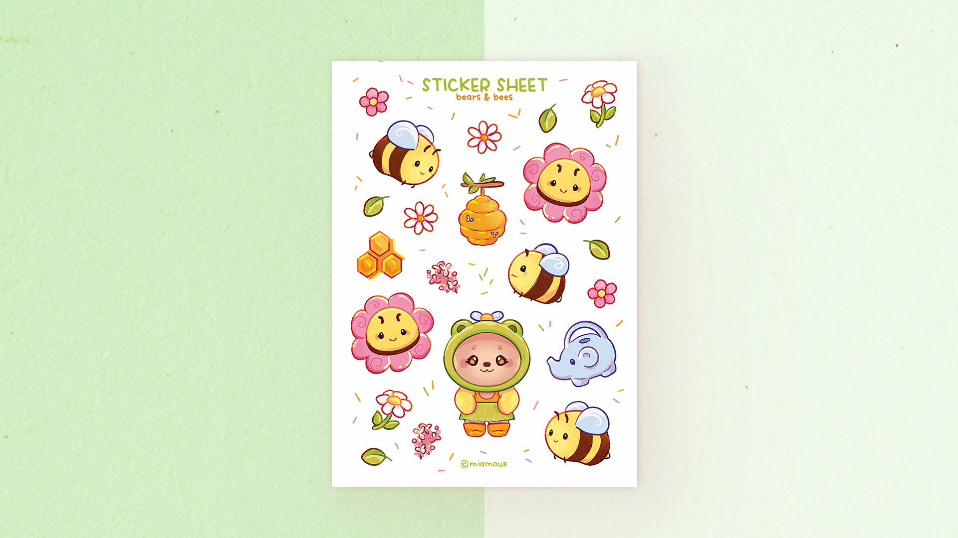 🎨 Looking for a bunch of cute summer themed stickers? I got you! This vinyl sticker sheet features lots of different bees, honey and bear themed stickers - all hand illustrated by me. It also has some tiny mini stickers to fill your sticker book or to use it in your calendar.